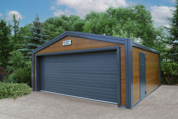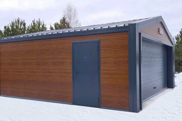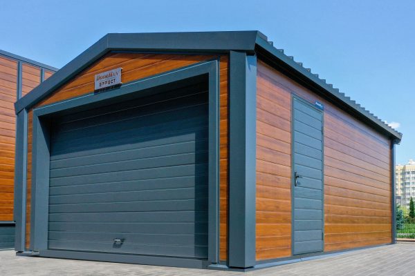 Боксовый гараж серии EFFECT 26 представляет собой теплое и комфортное помещение для хранения и обслуживания одного транспортного средства. Конструкция гаража отличается использованием высококачественных кровельных и стеновых панелей с PIR-изоляцией, что обеспечивает сочетание превосходных эксплуатационных характеристик и привлекательного внешнего вида. Для удобного въезда в гараж установлены автоматизированные секционные ворота RSD01 производства DoorHan, а для дополнительного доступа предусмотрена гаражная дверь «УЛЬТРА».