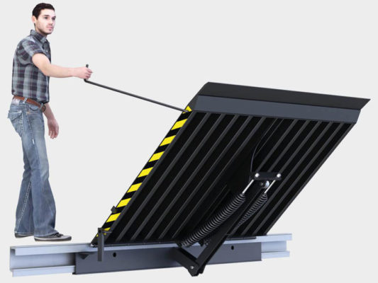 Поверхность откидного моста представляет собой стальной лист толщиной 5 мм с чечевичным рифлением высотой 0,5-1,5 мм и рассчитана на взаимодействие с ручными гидравлическими тележками и стандартными 4-х колесными погрузчиками с надувными шинами. Возможна небольшая потенциальная деформация поверхности моста, что не отражается на работе изделия. Аппарель изготавливается из стального листа толщиной 12 мм с чечевичным рифлением высотой 1,2-3,6 мм. Балки моста изготавливаются из трубы размером 60х40х3 мм. Мост имеет рычажную систему балансировки, основанную на 2-х пружинах и роликовой опоре. Направляющий рельс выполнен на базе горячекатаного швеллера размером 160 мм.