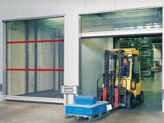 Скоростные ворота – это ворота, полотно которых изготовлено из ПВХ материала, армированного полиэстером, а каркас ворот из алюминия или стали. Принцип работы заключается в наматывании гибкого полотна на вал с большой скоростью, что обеспечивает беспрепятственное движение через проем погрузчиков. Устанавливаются такие ворота как внутри зданий, так и снаружи. Скоростные ворота применяются в местах с большой интенсивностью движения транспорта, как внутри помещения, так и для наружной установки, применяются, как средство полной и сверхбыстрой преграды для пыли, потерь тепла/холода и сквозняков. Отличаются большой пропускной способностью при минимальных тепловых потерях.